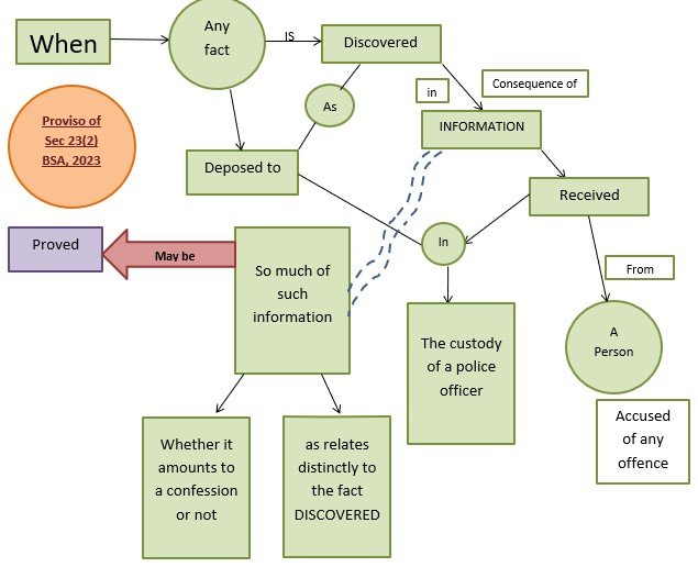 Proviso of Sec-23(2), BSA, 2023 [Sec 27, IEA, 1872] is an exception to the Sec 23(1) [Sec 25, IEA, 1872] and sec 23(2) [Sec 26, IEA, 1872] which generally bar confession by the accused person while he is in police custody.