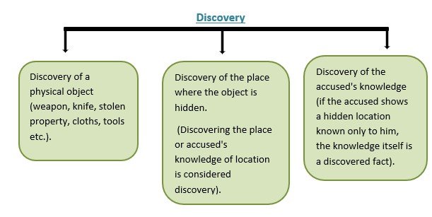 Discovery means finding out a new fact as a result of information given by the accused.