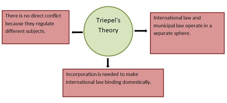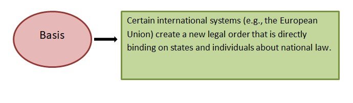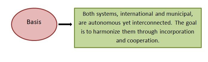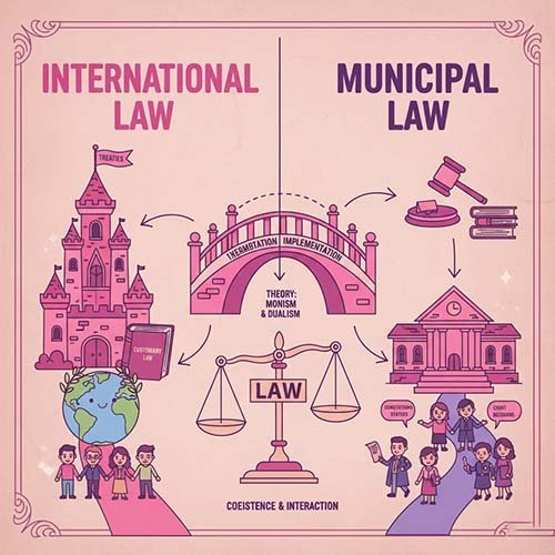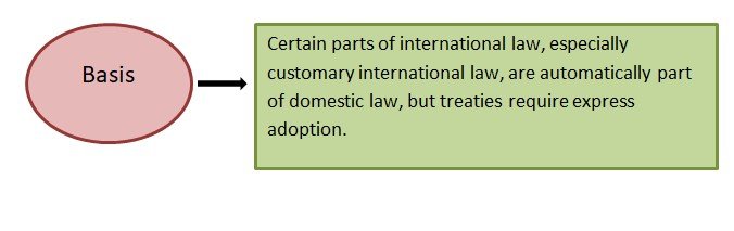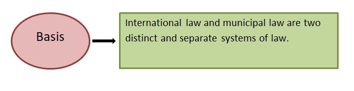 -The relationship between International law and municipal law (domestic/national law) concerns how international legal rules interact with and how influence a country's national internal legal system. This relationship determines how international obligations applied within a state.