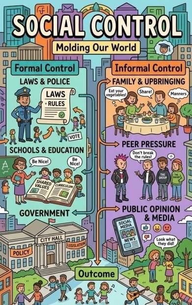 Social control is essential for the smooth functioning of society. Without social control, society would face chaos, disorder, and disintegration. Both formal and informal mechanisms work together to maintain social harmony and stability.